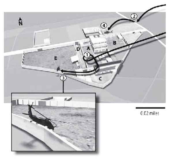 海矛行动中直升机的坠毁及降落路线。