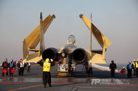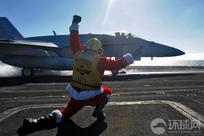 甲板上指挥灯光亮起,“我立即示意飞行员接通全加力,然后单手扶地、半蹲等待全加力接通,一系列动作非常连贯,一气呵成!”