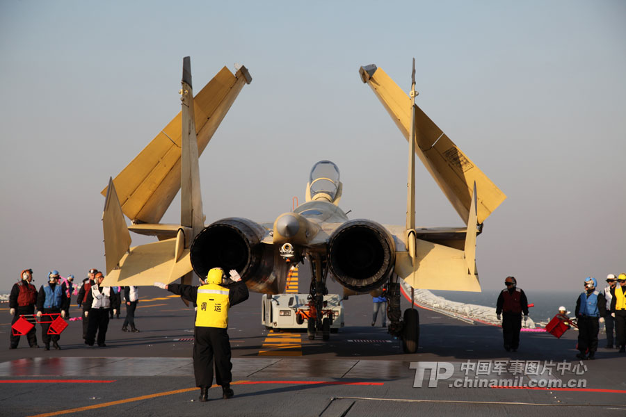 海军辽宁舰航空部门官兵在引导战机。 解放军报特约记者 李唐 摄