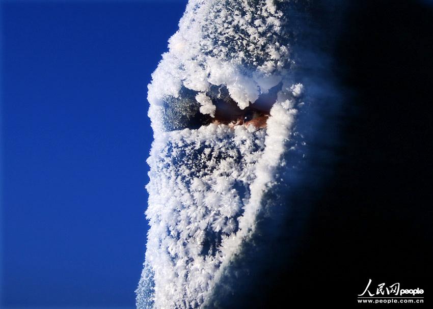 中国士兵在零下50度边境站岗 头部护具全结冰