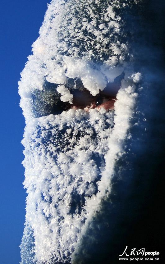中国士兵在零下50度边境站岗 头部护具全结冰