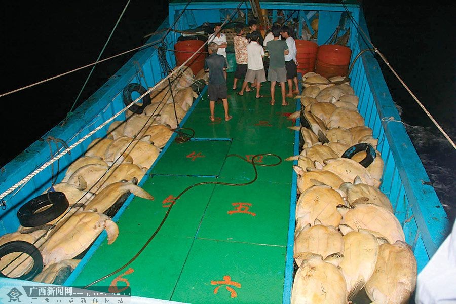 巡航过程中查获的非法捕捞海龟船只。