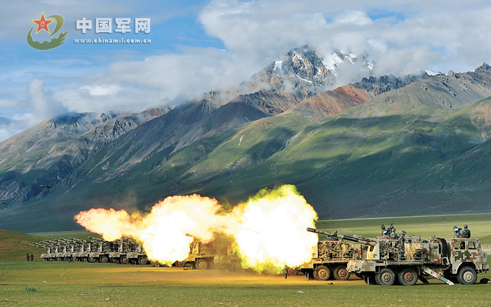 4月下旬,成都军区某炮兵团将部队拉上高原展开实弹演练。演练中,他们设置10余个训练课目,在近似实战的环境中练协同、练技能、练战术,锤炼部队高寒山地环境作战能力。图为火炮齐射瞬间。作者:袁钰 李彤摄影报道