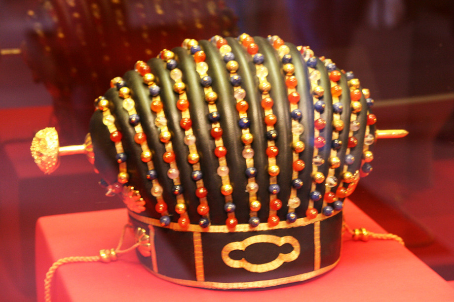 当时的周边小国均以被东亚秩序体系的领导者--明帝国承认为荣,但是尚圆死后,王国大宝发生了一件乌龙事件。尚圆的王储尚真因为年幼,故由其王叔即位,结果最高神女宣读神谕时发生了口误,将即位者念成王储的名字。王叔为此羞愤难当,六个月后将大宝让位给王储尚真,这就是琉球王国历史上最英明的尚真王。(图为由明朝皇帝赐给琉球国王的皮弁,称为“玉御冠”)