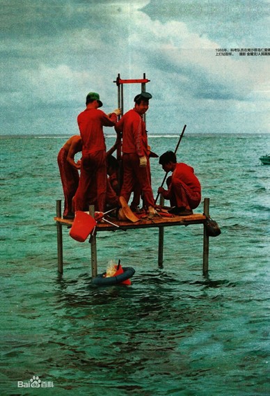 1988年中国科考队在仁爱礁打孔钻样