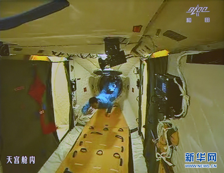 6月13日16时17分,聂海胜进入天宫一号 秦宪安 摄