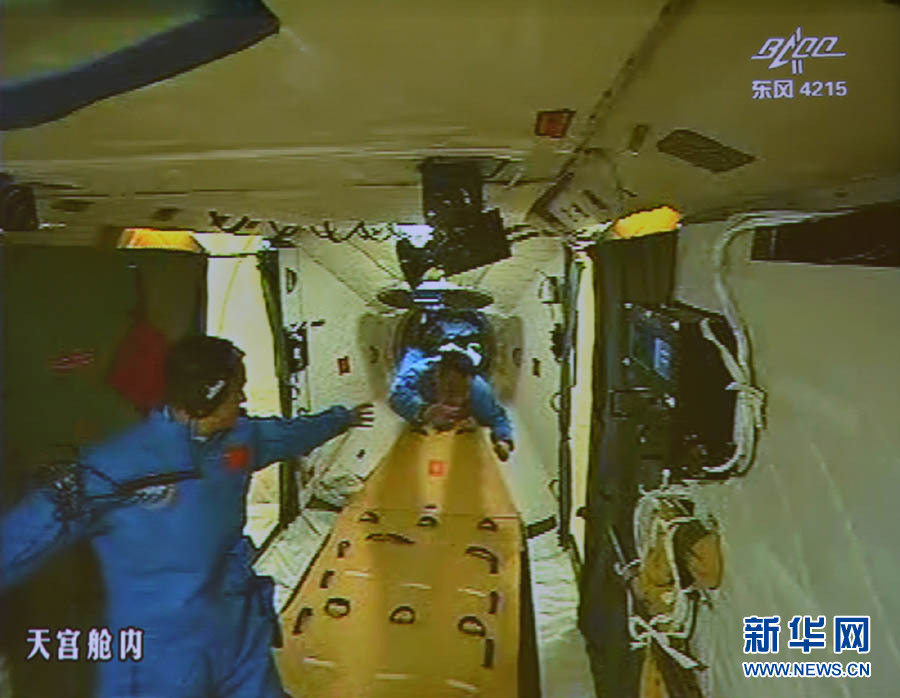6月13日16时19分,张晓光进入天宫一号 秦宪安 摄