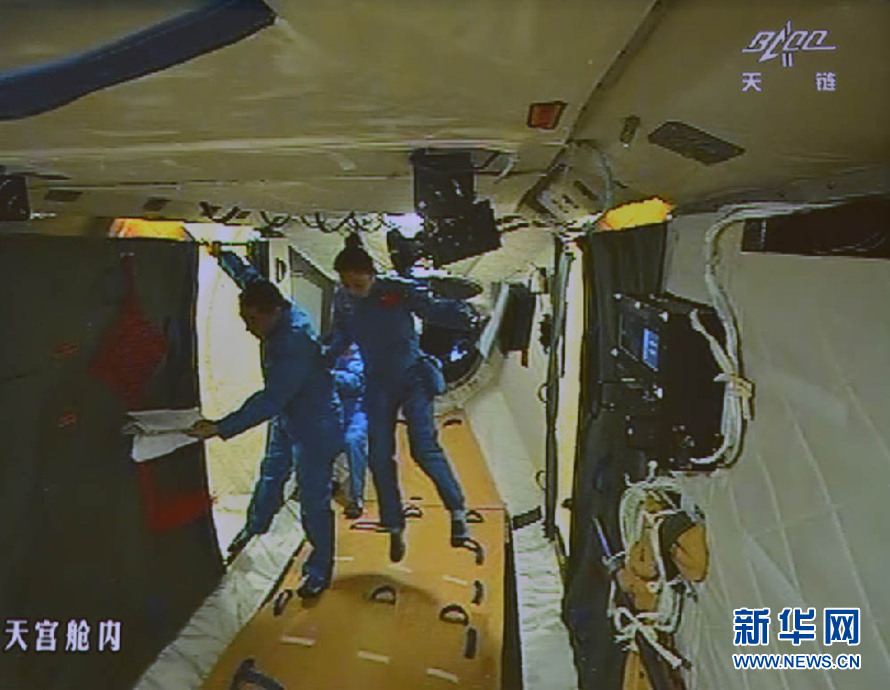16时28分,神舟十号航天员乘组在天宫一号投入工作 秦宪安 摄