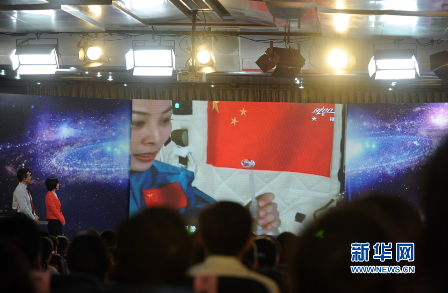 图为太空授课老师王亚平在做实验。新华网 李非 摄