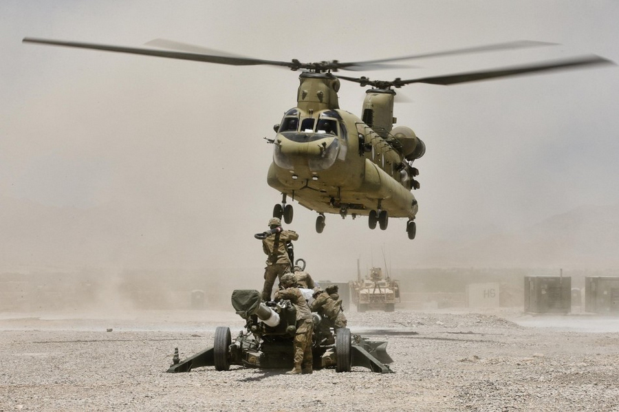驻阿美军向前沿基地吊运A777A2榴弹炮