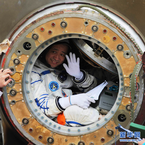 舱门打开,聂海胜向记者招手。新华社记者王建民摄