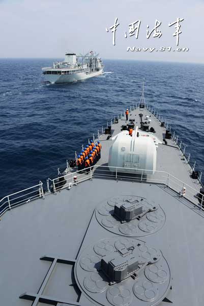 中国海军赴俄舰队在日本海补给液货