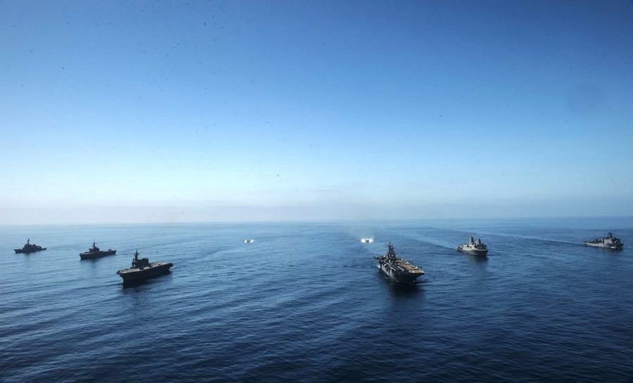 场面浩大:日美联合两栖攻击舰队练夺岛战