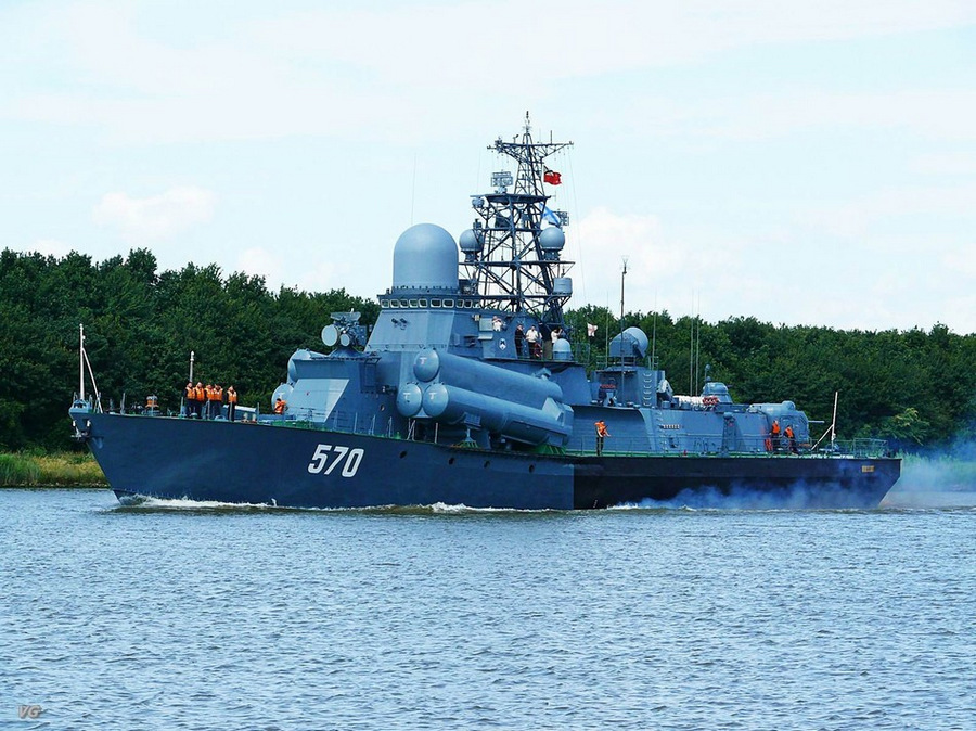 俄舰艇火力太猛 导弹发射后舰体熏黑大半