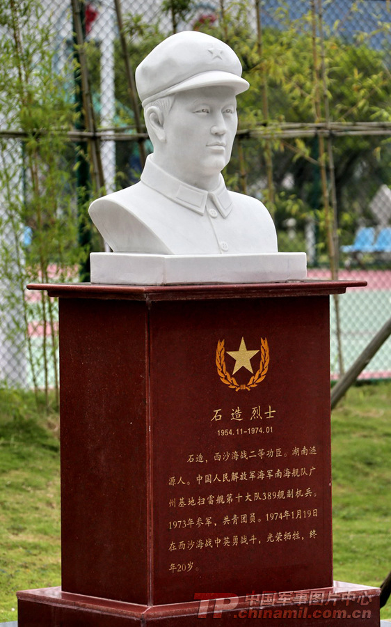 石造,西沙海战二等功臣。湖南涟源人。中国人民解放军海军南海舰队广州基地扫雷舰第十大队389舰副机兵。1973年参军,共青团员。1974年1月19日在西沙海战中英勇战斗,光荣牺牲,终年20岁。