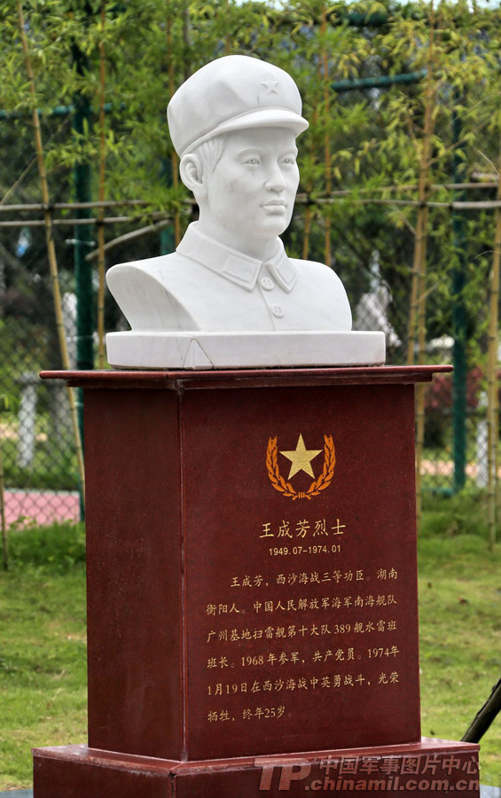 王成芳,西沙海战三等功臣。湖南衡阳人。中国人民解放军海军南海舰队广州基地扫雷舰第十大队389舰水雷班班长。1968年参军,共产党员。1974年1月19日在西沙海战中英勇战斗,光荣牺牲,终年25岁。