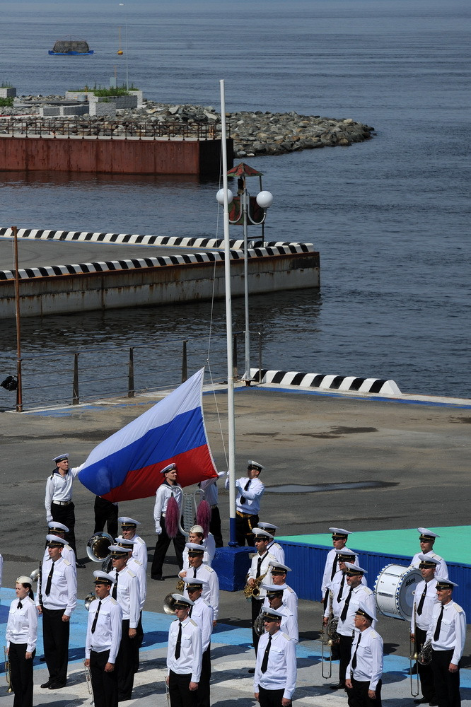 俄太平洋舰队庆祝海军节 漂亮姑娘来献舞