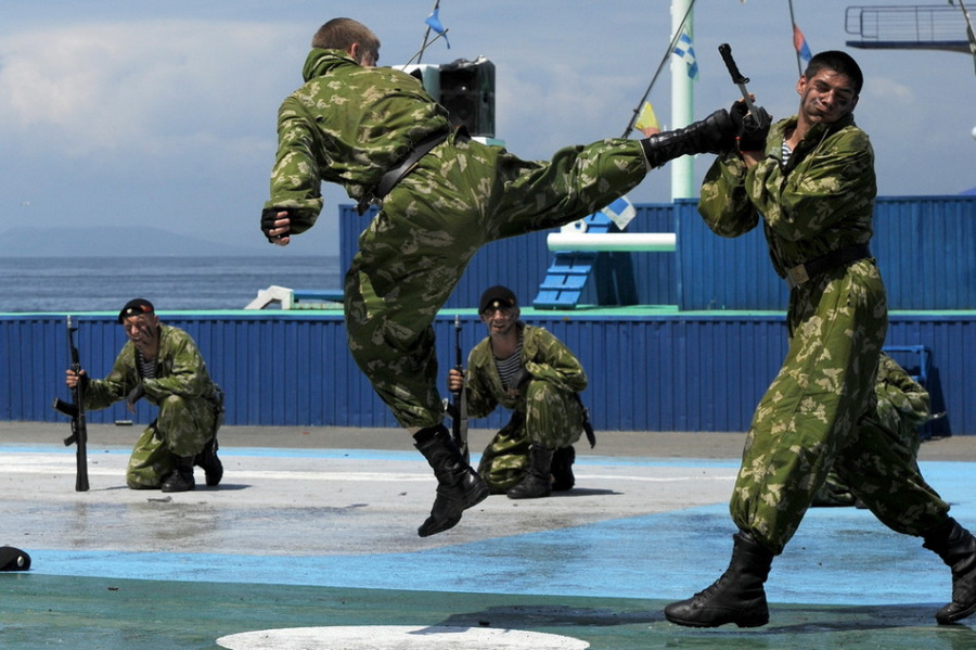 俄太平洋舰队庆祝海军节 漂亮姑娘来献舞