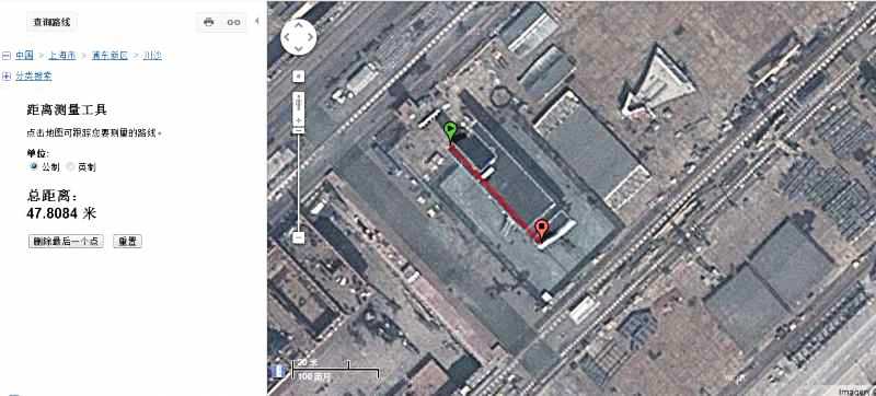 可以利用谷歌地图提供的测距功能测量该分段的尺寸