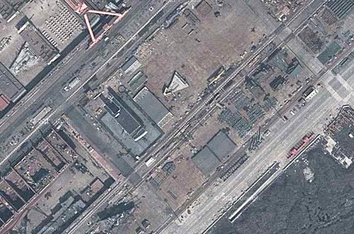 谷歌地图上显示的江南长兴造船厂,可以清晰地看到所谓的中国航母模拟分段。