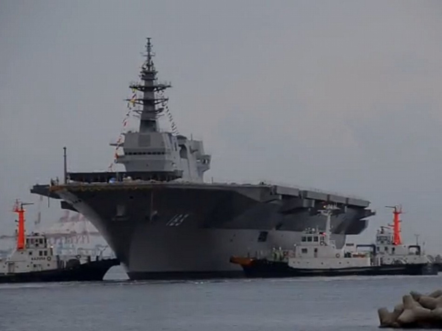 日本战后最大的“准航母”护卫舰“出云”号6日在横滨下水,东亚国家哗然。没料到,日本媒体又爆出惊人消息——在不远的将来,日本将拥有另一艘与“出云”号相同型号的“舰艇”。日本NHK电视台6日援引防卫省的话说,日本计划再建一艘与“出云”号型号相同的护卫舰。日本究竟意欲何为?图为日本最新型直升机航母22DDH下水。
