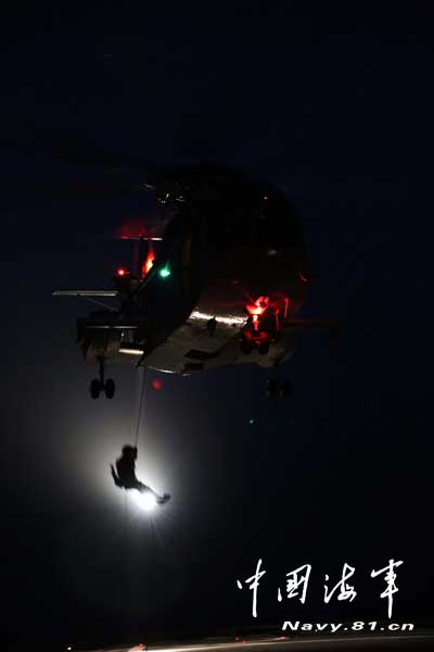 动作帅气:中国护航特战员夜间滑降坞登舰