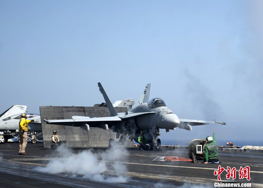 F/A-18C大黄蜂战机从航母上起飞(资料图)