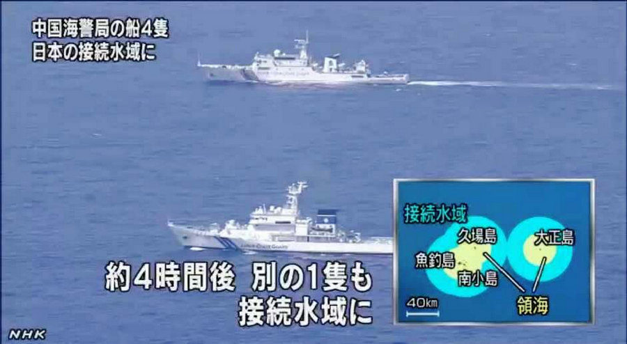 中国4艘海警船巡航钓鱼岛 无视日舰监视骚扰