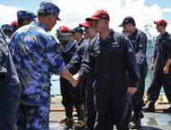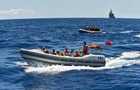 2013年9月9日,美国夏威夷瓦胡岛附近太平洋海面上,中国人民解放军海军青岛号驱逐舰(DDG113),临沂号导弹护卫舰(FFG547),美国海军导弹巡洋舰“伊利湖”号(CG70)三艘战舰编队进行搜索及救援演习。(来源:新华网)