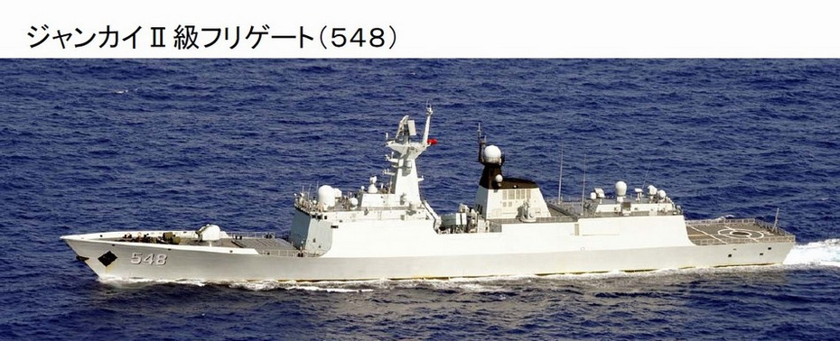 日方侦察机拍摄到的中国海军返航编队,图为054A型益阳号导弹护卫舰。