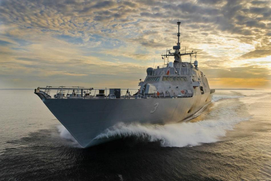 美国海军濒海战斗舰LCS-3“沃斯堡”号服役前在海上进行测试