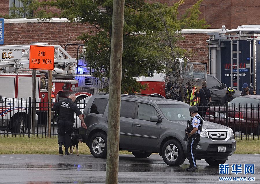 9月16日,在美国首都华盛顿美国海军海洋系统司令部大院外,警察搜查一辆汽车。当日,位于首都华盛顿的海军海洋系统司令部发生枪击案,造成数人受伤。华盛顿警方负责人凯茜·拉尼尔当日说,当天发生的海军海洋系统司令部枪击案已有1名嫌疑人死亡,可能另有2名嫌疑人在逃。新华社记者张军摄(来源:新华网)