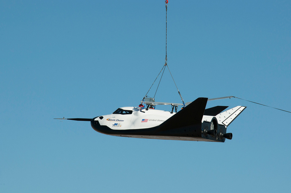 图片为美国追梦者飞船进行直升机悬吊自由飞试验,据美国媒体猜测中国的“遨天”1号飞船可能与其十分类似。中国的“遨天”1号飞船的自由飞试验可能采用类似的方式,使用直升机在高纬度地区进行自由放飞试验。