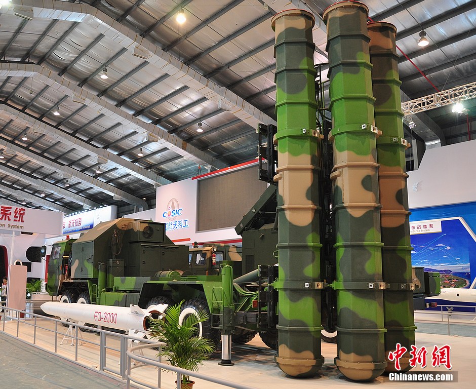 2012年珠海航展上亮相的中国外贸版红旗9防空导弹(外贸型号:FD-2000)。陈海峰 摄