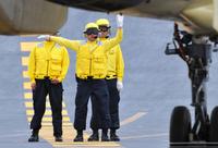 在中国航母“辽宁号”宽阔的飞行甲板上,忙碌着许多水兵,他们分工、部位和使命非常明确。 (来源:中国航空报 齐晓东 张凯 本报记者 牟健 摄影报道)