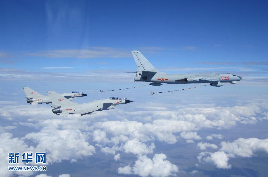 加油机(右)与受油机在空中进行对接。 9月下旬,东海舰队某歼击机团组织空中加油训练。空中加油训练,因其能成倍提高战机的作战半径,一直是各国重点训练课题。该团针对如何修正扰流、保持稳定、准确对接等10多个技术难题进行技术公关,研究制定多套加受油实施方案。在合练阶段,该团参训飞行员全部一次性对接成功,标志着我海军航空兵某新型国产战机大规模远程机动作战能力又有了新突破。新华社发(吴传军摄)