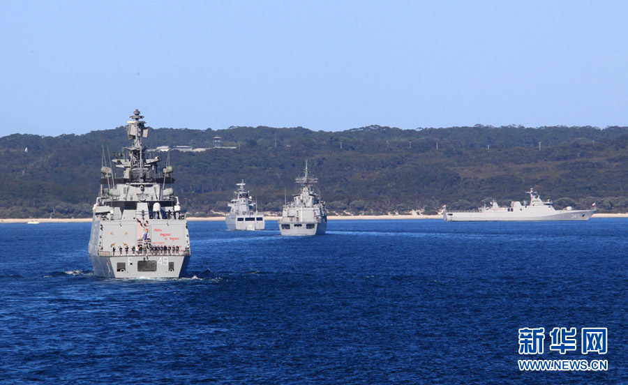 11国海军参演军舰组成编队驶抵演习海区杰维斯湾。新华军事记者 查春明摄