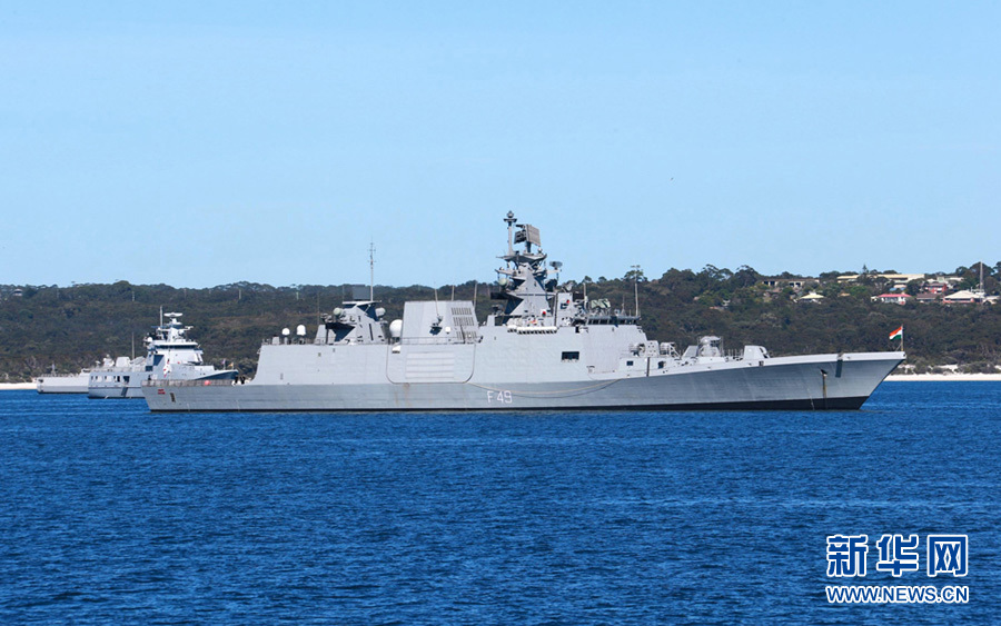 印度海军“撒亚德里”号护卫舰抵达杰维斯湾。新华军事记者 查春明摄