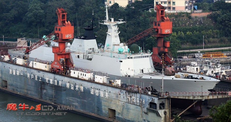 10月7日,最新建造的一艘054A型护卫舰被运送到浮动船台上,即将下水。