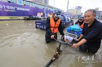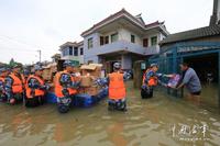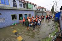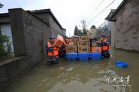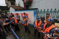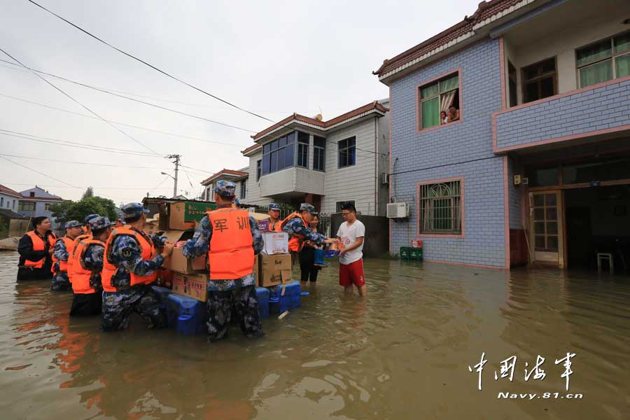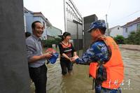 海军官兵赴余姚救灾 蹚水挨家挨户送食品