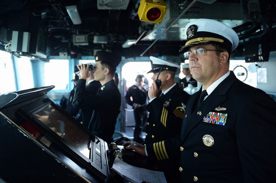 美国海军“安提坦号”导弹巡洋舰上的指挥人员