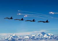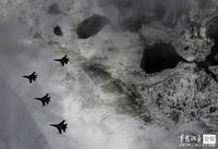 日前,在西藏高原驻训的空军航空兵某团4架新型战机沿喜马拉雅山脉飞行,执行武装警巡任务。