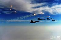 图中,4架执行武装警巡任务的新型战机成编队飞行,战机上方的数条亮线是战机发射红外干扰弹形成的尾迹。飞行员驾驶携带导弹等武器装备的战斗机编队升空后,按照预定的飞行航线,对周边所属空域进行全方位警戒巡逻。飞行过程中,飞行员保持高度戒备,密切关注雷达和周边状况,随时警惕和应对可能的突发情况。(来源:中国军网)