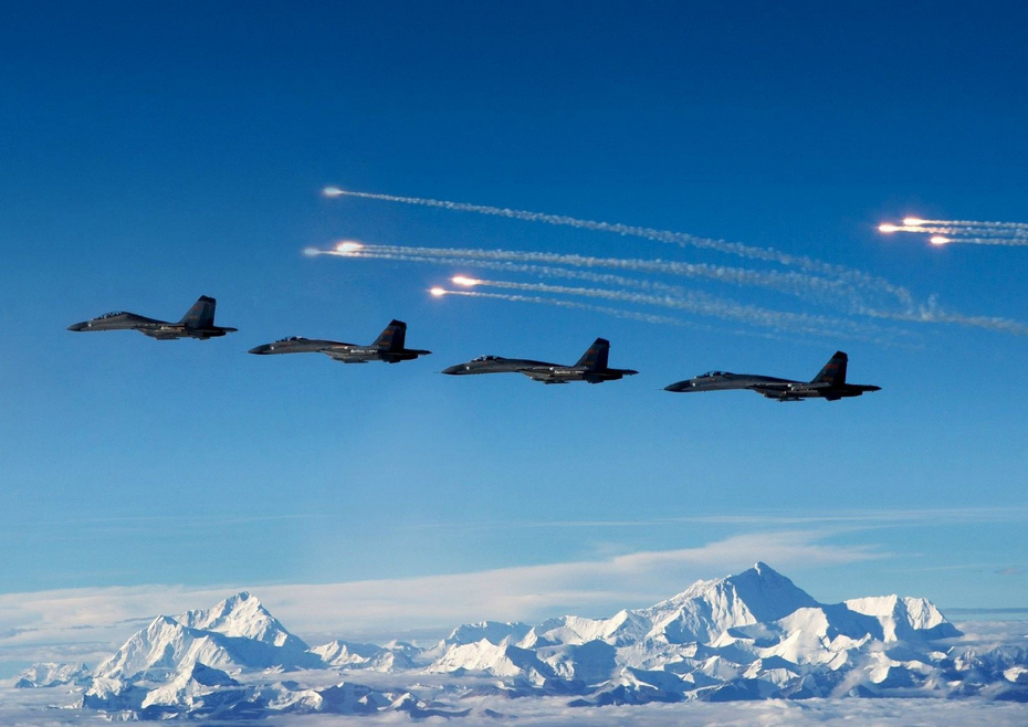 实拍:中国歼11战机群武装警巡喜马拉雅山
