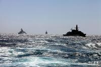 当地时间上午11时30分(北京时间22时30分),参演的中智海军4艘舰艇在智利附近海域指定点会合,海上演习正式开始。记者在现场看到,演习海区浪高3到4米,风力超过每秒12米,参演的4艘舰艇在波峰浪谷间剧烈摇摆。在近三个小时的联合演习中,双方密切协同,相互转换指挥关系,先后进行了编队运动、通信操演以及协同防空等科目的演练。