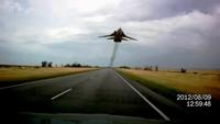 高速路惊魂:俄战机超低空飞行从车顶掠过
