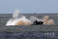 近日,南海某海域浊浪滔天,热浪滚滚,海军陆战队某旅抓住这一有利时机组织两栖装甲车进行海上浮渡射击训练。