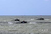 当天,两栖装甲突击车、两栖装甲步兵战车先后20批60余辆次踏浪蹈海泛水编波,进行浮渡射击训练,消耗炮弹500余发,命中率达95%,25名射手实弹射击成绩优异,被评为优秀射手。