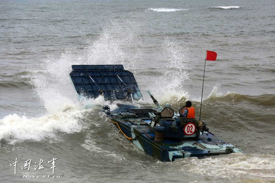 海军陆战队某旅两栖装甲车海上浮渡射击训练