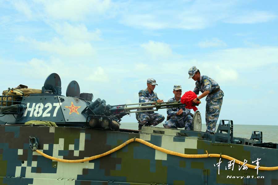 海军陆战队某旅两栖装甲车海上浮渡射击训练